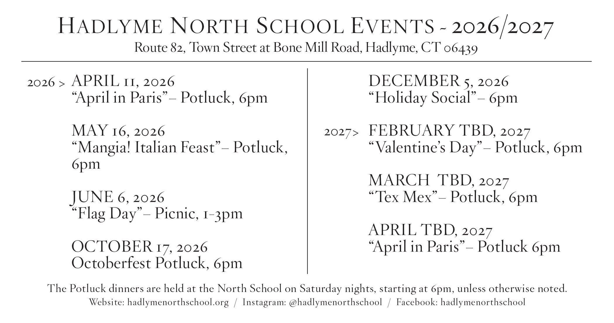 UPDATED EVENTS FOR 2026/2027: